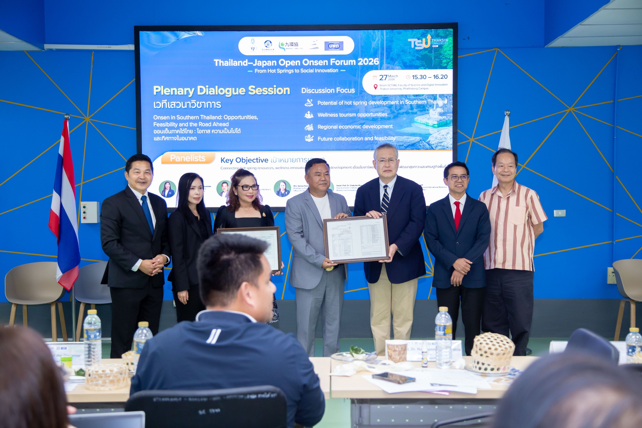 On 27 March 2026, Thaksin University hosted the Thailand–Japan Open Onsen Forum 2026: From Hot Springs to Social Innovation at Thaksin University, Phatthalung Campus, in collaboration with The University of Kitakyushu and Kyushu Environmental Evaluation Association (KEEA), Japan.
